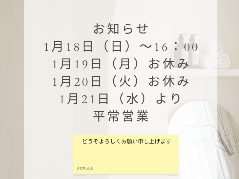続きを読むいつも本当にありがとうございます! 年末年始の営業&休業日のお知らせです 年内は12月31日(~12:00)まで年始は1月5日(月)より通常営業にて(10:00~19:00)どうぞよろしくお願い申し上 …
