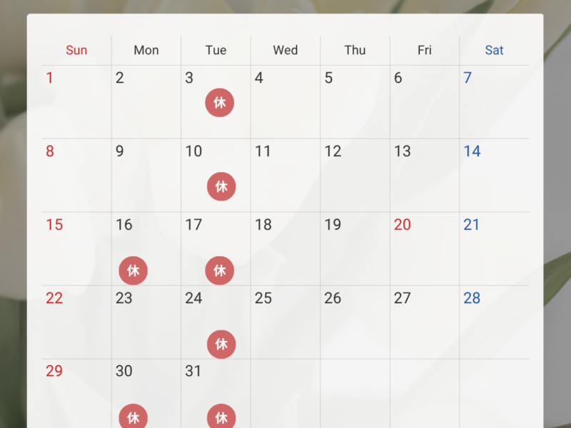 いつもお世話になり本当にありがとうございます 3月の営業&お休み日のお知らせです 3.10.16.17.24.30.31日です(火曜日 16日月曜日 お休み) どうぞよろしくお願い申し上げます 営業時 …