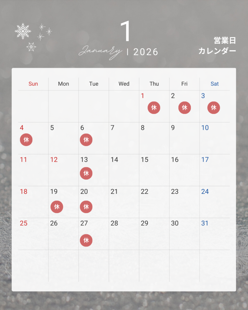 1月の営業&お休み日のお知らせです